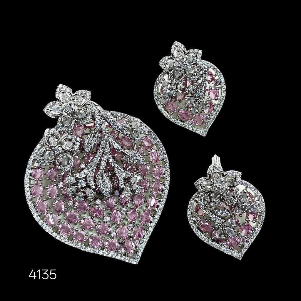 Discover the exquisite beauty of the 4135 AD PENDANT SET (SA00868PB). This pendant set blends classic artistry with modern allure, making it a dazzling choice for those who love unique yet traditional designs.