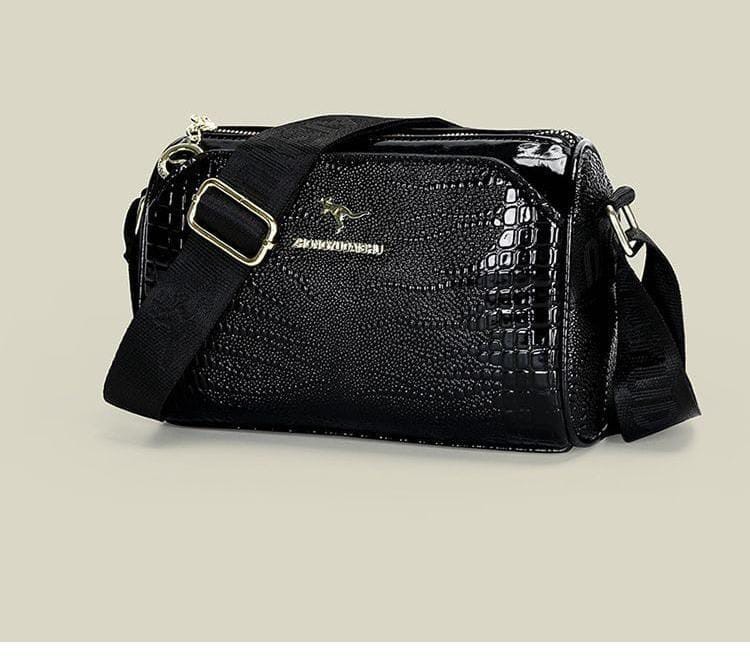 Elevate your style with this chic black shoulder bag, designed with a striking glossy crocodile-textured finish that adds a touch of sophistication to any outfit. Crafted for both everyday convenience and special occasions, it features a comfortable adjustable strap for a perfect fit and a roomy interior to carry all your essentials with ease. Measuring approximately 10 inches wide by 7 inches high, this versatile bag easily transitions from day to night, making it a must-have accessory in your collection.