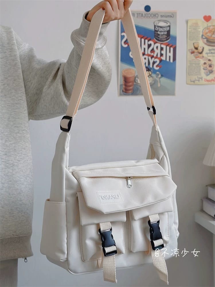 Elevate your everyday style with this chic shoulder bag, featuring a beautiful blend of soft blue and crisp white tones. Designed for convenience, it offers spacious front pockets to keep your essentials organized and an adjustable strap for a comfortable custom fit. Crafted to deliver both elegance and practicality, this versatile bag is perfect for work, shopping, or leisure. Dimensions: approximately 32cm x 26cm x 10cm. Material: durable canvas. Add a touch of effortless sophistication to any outfit with this standout accessory.