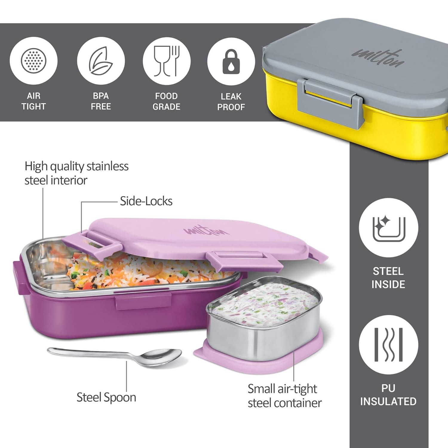 • Package Contents - 1 x Senior Flatmate Insulated Lunchbox, 1 x Steel Container, 1 x Spoon