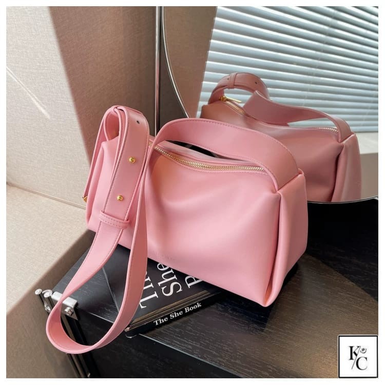Discover effortless style with our chic pink shoulder bag, crafted in a soft, curved silhouette that elevates any outfit. The spacious interior keeps your essentials organized, while the secure zipper closure and adjustable strap provide comfort and versatility for everyday use. Perfect for work, shopping, or weekend adventures, this eye-catching accessory adds a pop of color to your wardrobe. Dimensions: 10” x 8” x 3”. Made from premium materials for lasting durability.