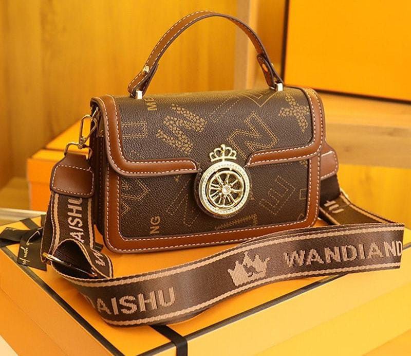 Elevate your style with this sophisticated handbag, featuring a timeless beige canvas exterior embellished with whimsical letter and star motifs and complemented by luxurious brown leather trim. Designed for versatility, it includes a detachable shoulder strap so you can effortlessly switch between a shoulder bag and a handbag. The elegant gold medallion clasp adds a touch of glamour, making this accessory the perfect finishing piece to any outfit. Spacious enough for your daily essentials, this chic handbag measures approximately 30cm x 20cm x 10cm, combining fashion and function in one beautiful package.