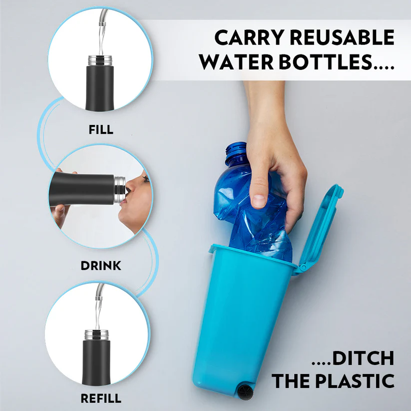 - convenient size fits in the side pocket of school, trekking or office bag, car bottle holder etc