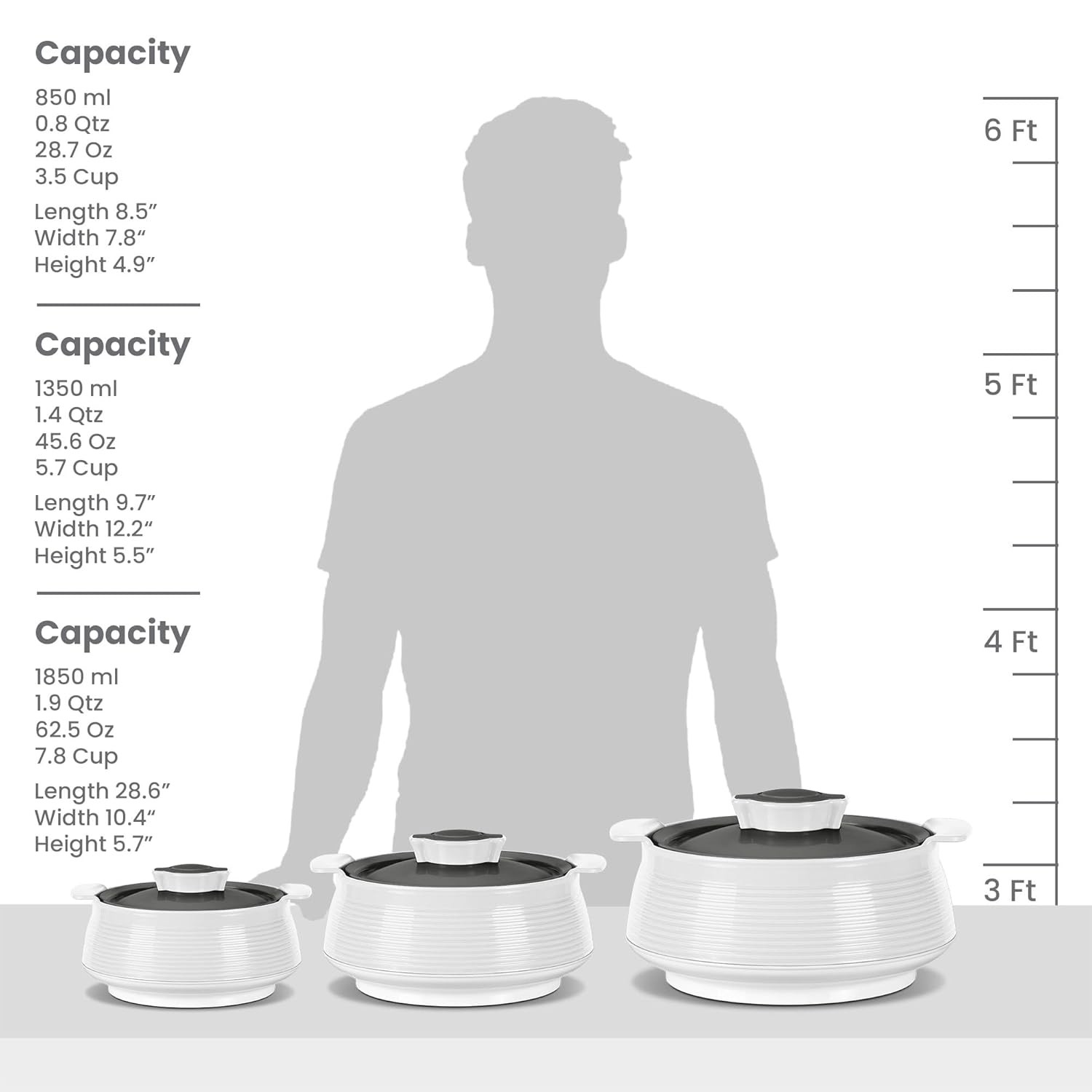• Colour: MICRO WHITE ; Material: Inner Stainless Steel; Package Content: 3 - Pcs Venice Regukar Casserole Set