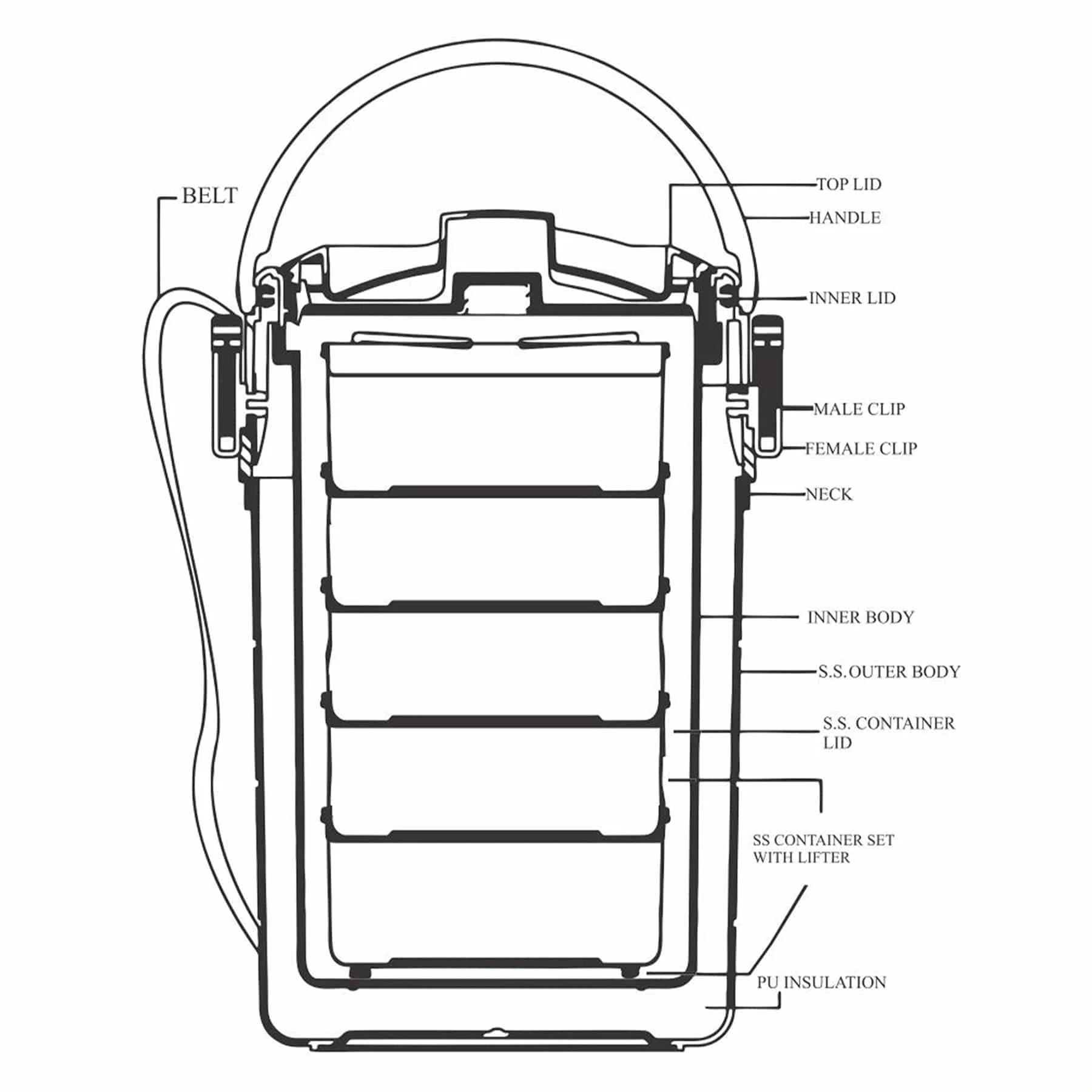 STEEL ON 5 CONTAINER TIFFIN (AM-STOT1800SS116-BM)